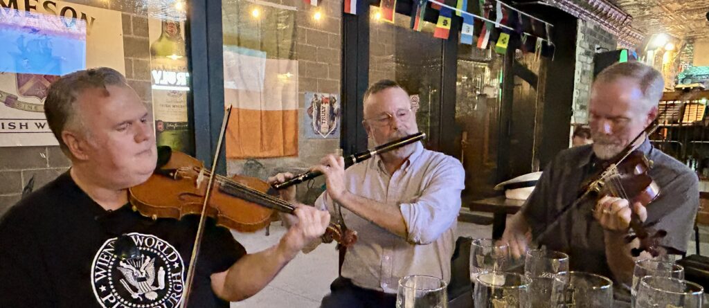 Bailephitt is a Pittsburgh-based traditional Irish music trio of veteran musicians Richard Withers (Irish flute, whistles, accordion, vocals), Vince Burns (fiddle, octave mandolin) and Michael Hurley (fiddle, tenor banjo). Their driving renditions of traditional reels, jigs, hornpipes, airs and Irish polkas, topped off with the occasional song, can be heard at sessions and dances throughout Pittsburgh, performed with skill and taste refined over years of playing with top musicians in the authentic Irish style.